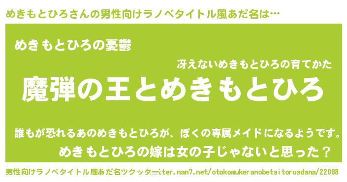 | 意味不明あだ名 | 『住所不定無職めきもとひろ(98歳)』 |