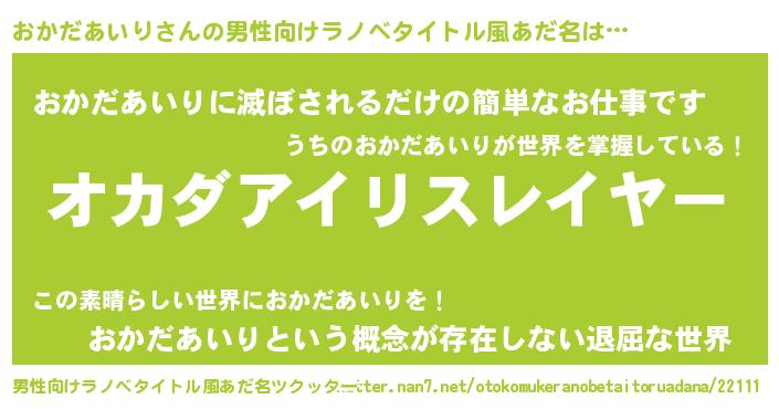 ヘコむあだ名 | 『おかだあいり(遠い目)』『なまこ酢』 |