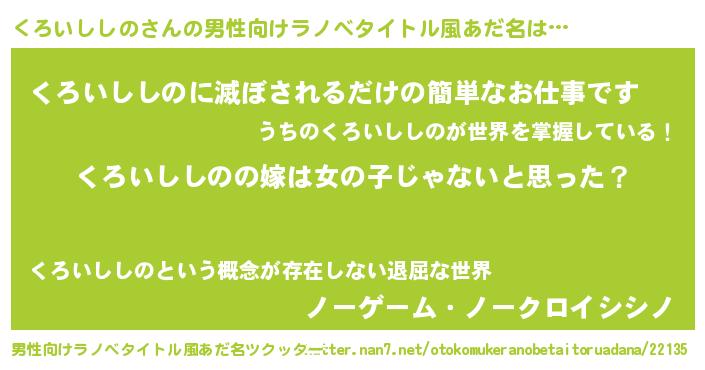| ヒーロー風カッコイイあだ名 | 『炎刃騎士クロ』『愛の使者くろいししの』 |