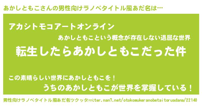 | ヘコむあだ名 | 『あかにゅー』『あかしともこ(震え声)』 |