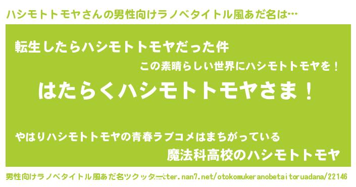 | 肩書あだ名 | 『ハシモトトモヤディレクター』 |
