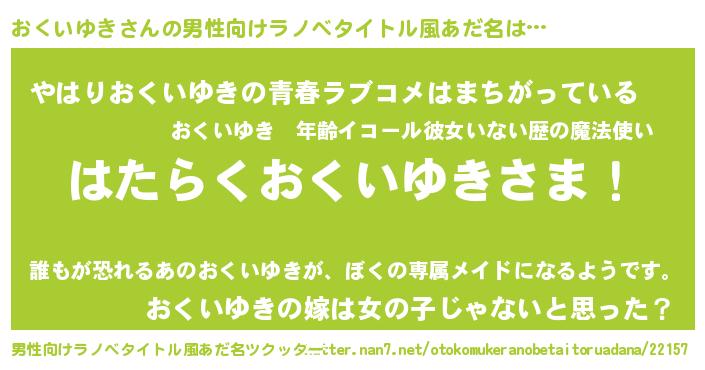 | 意味不明あだ名 | 『おくいゆきフォーエバー』 |