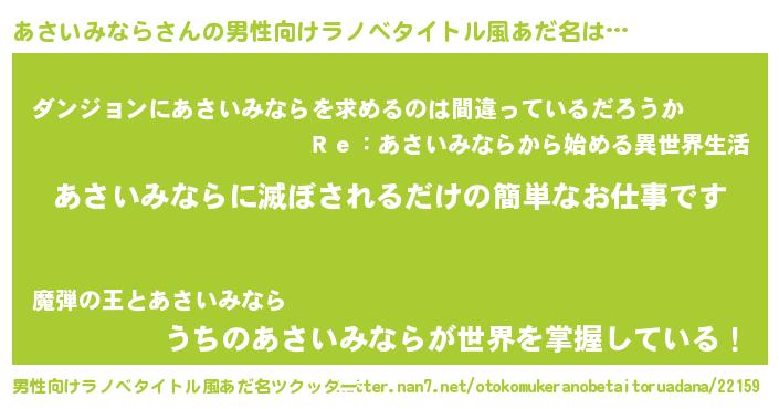 | 伝説のあだ名 | 『覚醒した遊び人あさいみなら』 |