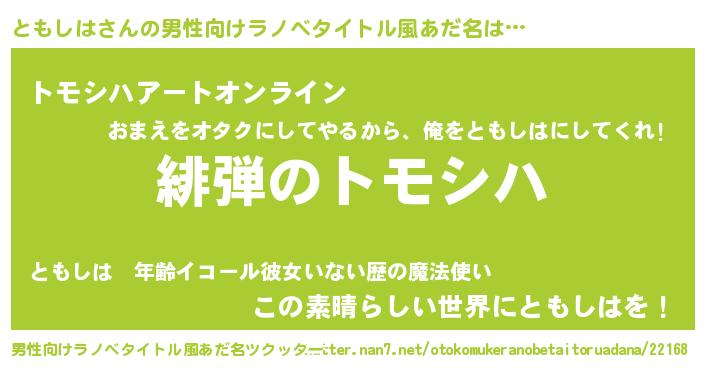 | 胡散臭い通販商品みたいなあだ名 | 『必ず成功するブレスレット…その名も「ともしは」』 |