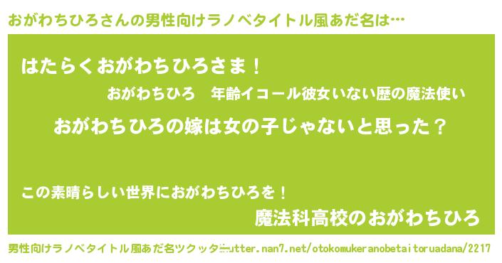 | 意味不明あだ名 | 『とにかく怪しいおがわちひろ』 |