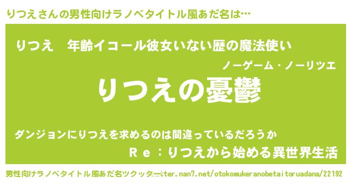 | 女子向けラノベタイトル風あだ名 | 『(仮)りつえのやんごとなき事情』 |