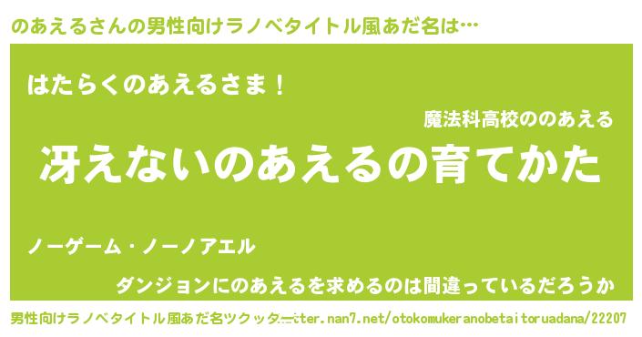 | 肩書あだ名 | 『のあえる船長』『のあえるマネージャー』 |