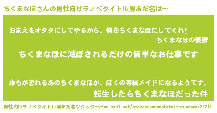 | 胡散臭い通販商品みたいなあだ名 | 『モンドセレクションを受賞した隕石のかけら…その名も「ちくまなほ」』 |