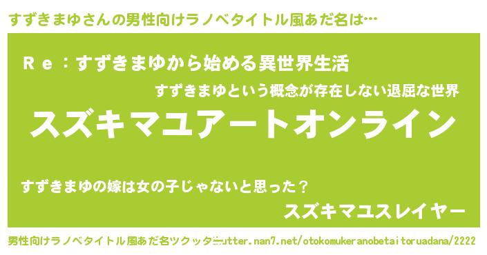 | 肩書あだ名 | 『すずきまゆCEO』『すずきまゆ総統』 |