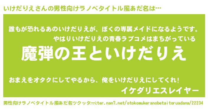 | 意味不明あだ名 | 『住所不定無職いけだりえ(84歳)』 |