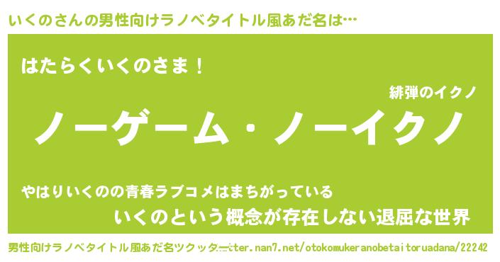 | 女子向けラノベタイトル風あだ名 | 『いくの恋絵巻』『首の姫と首なしいくの』 |