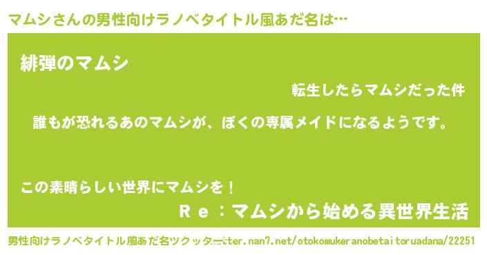 | 意味不明あだ名 | 『永久保存マムシ』『自称マムシ』 |