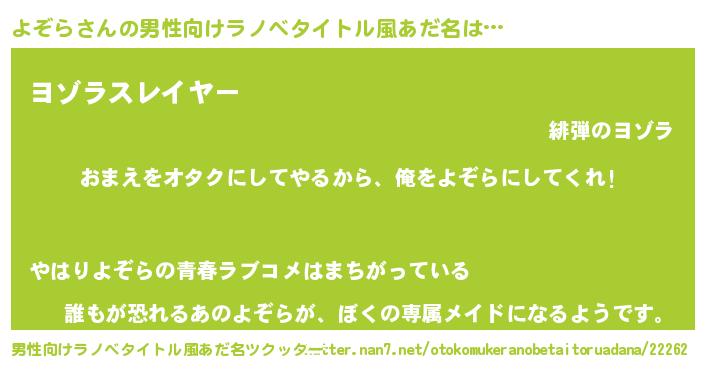 | ヘコむあだ名 | 『よぞら(笑)』『牛乳』『よぞにー』 |