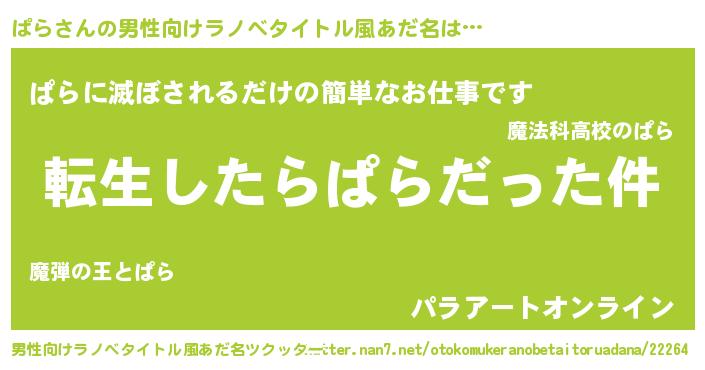| ヘコむあだ名 | 『ぱらにー』『レバニラ』『ぱらお』 |
