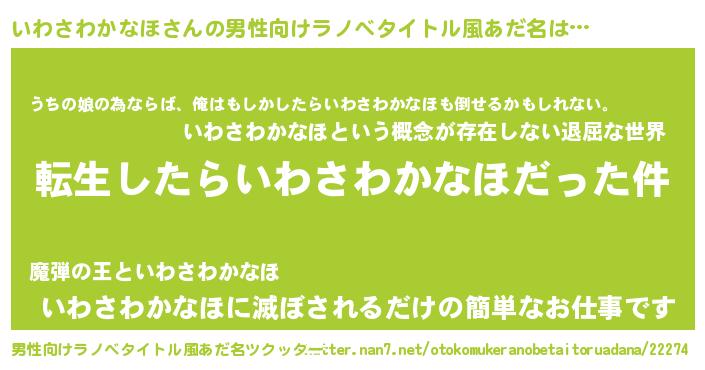 | 女子向けラノベタイトル風あだ名 | 『いわさわかなほの玉の輿計画!』 |