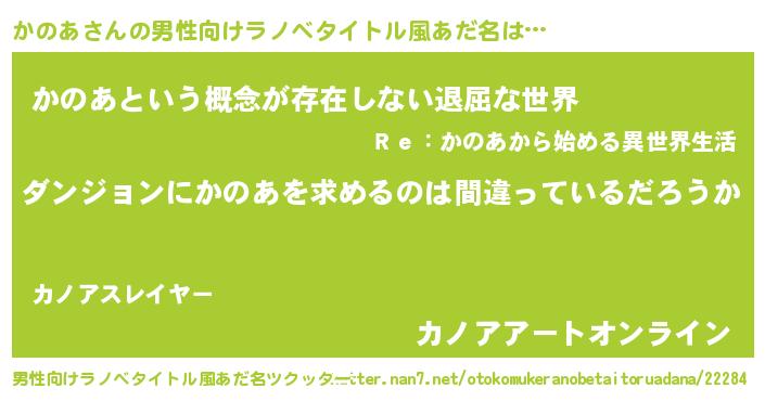 | ヘコむあだ名 | 『かのっ子』『かのあ(震え声)』 |
