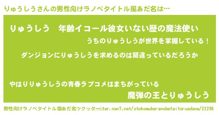 | 女子向けラノベタイトル風あだ名 | 『りゅうしうは平凡を望む』 |