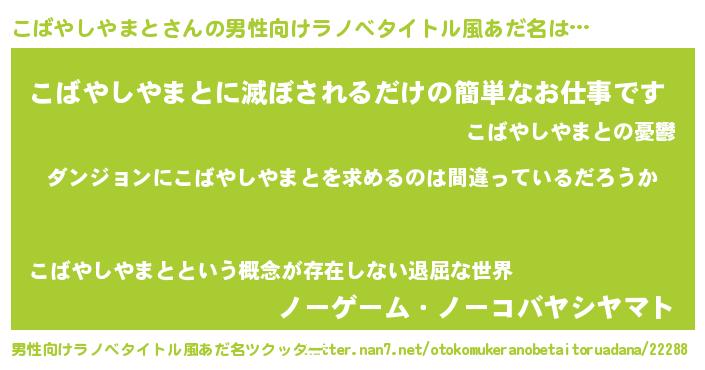 | 胡散臭い通販商品みたいなあだ名 | 『信頼と実績のネックレス…その名も「こばやしやまと」』 |