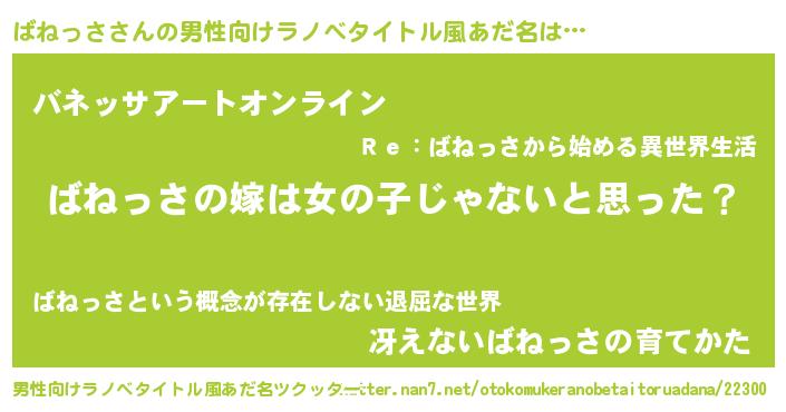 | ファンタジー風あだ名 | 『ファントムバネス』『バネフェル』 |
