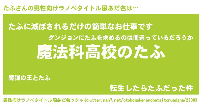 | 胡散臭い通販商品みたいなあだ名 | 『テレビで話題の高麗人参…その名も「たふ」』 |