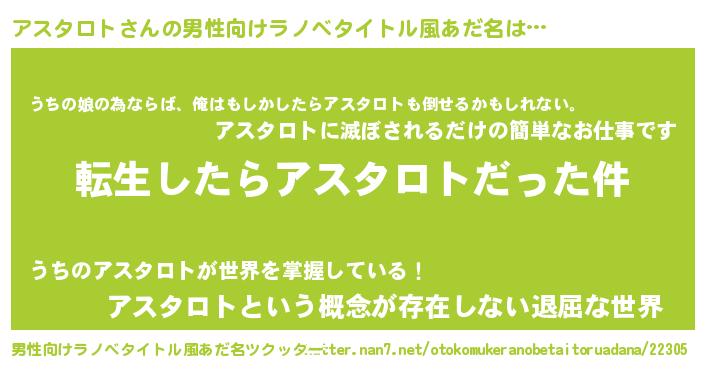 | 女子向けラノベタイトル風あだ名 | 『アスタロトの玉の輿計画!』 |