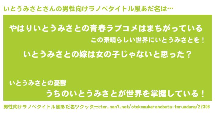| 女子向けラノベタイトル風あだ名 | 『いとうみさとの卵を拾いまして』 |