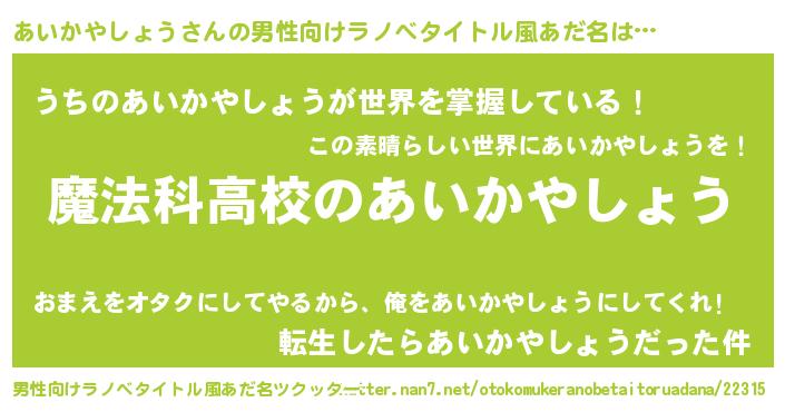 | 意味不明あだ名 | 『自称あいかやしょう』 |