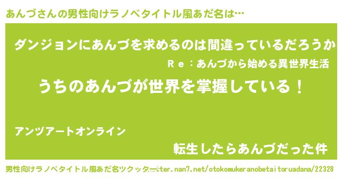 | 意味不明あだ名 | 『とにかく怪しいあんづ』『自称あんづ』 |