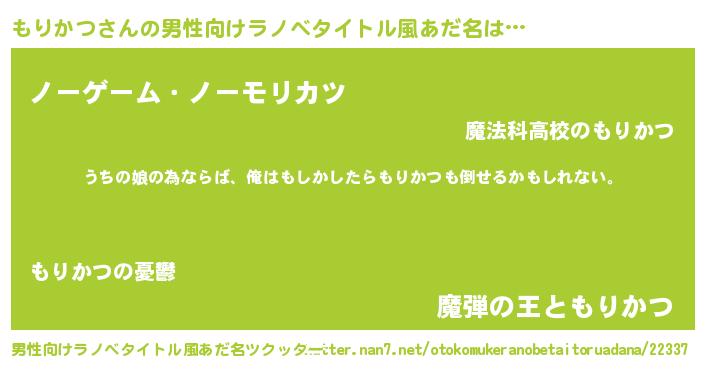 | ヒーロー風カッコイイあだ名 | 『ウルトラもりかつマン』『仮面モリダー』 |
