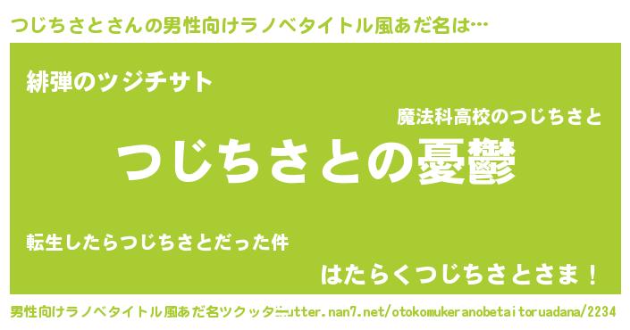 | 女子向けラノベタイトル風あだ名 | 『(仮)つじちさとのやんごとなき事情』 |