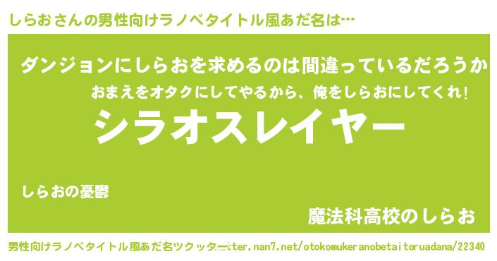 | ヒーロー風カッコイイあだ名 | 『暗黒騎士シラ』『最強戦士シラオ』 |