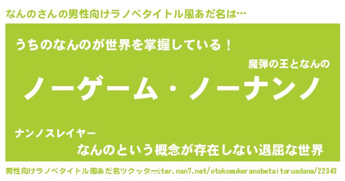 | 女子向けラノベタイトル風あだ名 | 『死神なんのの再婚』『なんのの契約王妃』 |