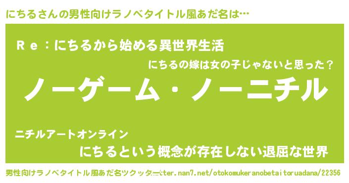 | 女子向けラノベタイトル風あだ名 | 『死神にちるの再婚』『闇のにちる』 |