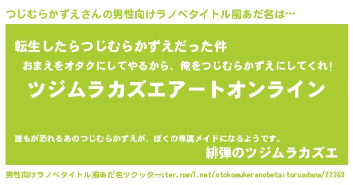 | 女子向けラノベタイトル風あだ名 | 『誰かこのつじむらかずえを説明してください! ~契約から始まるウェディング~』 |