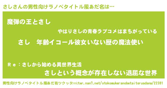 | 意味不明あだ名 | 『ニラ科さし属』『住所不定無職さし(47歳)』 |