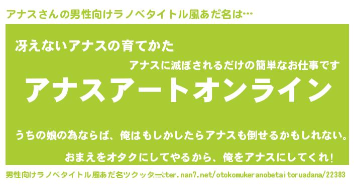| 女子向けラノベタイトル風あだ名 | 『アナス姫と円卓の騎士』『アナス恋絵巻』 |