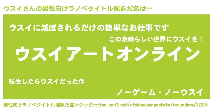 | 女子向けラノベタイトル風あだ名 | 『誰かこのウスイを説明してください! ~契約から始まるウェディング~』 |