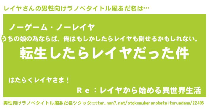 | ヒーロー風カッコイイあだ名 | 『愛の使者レイヤ』『最強戦士レイヤ』 |