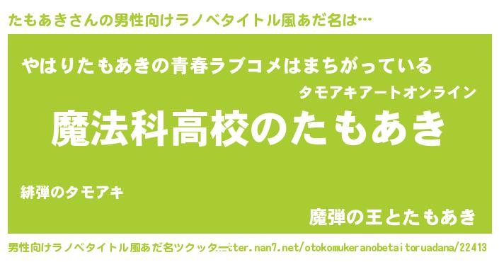 | 女子向けラノベタイトル風あだ名 | 『たもあきアンティーク』 |