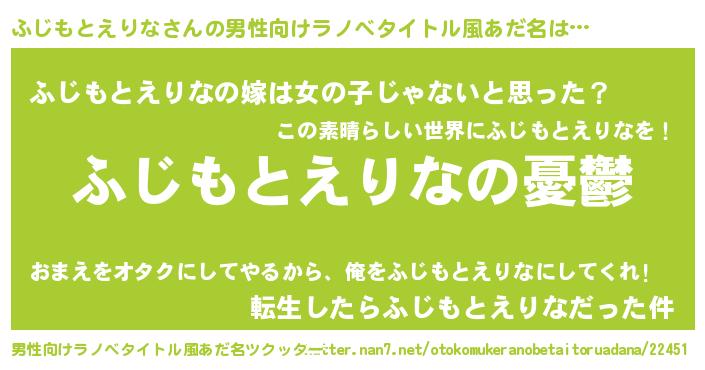 | 胡散臭い通販商品みたいなあだ名 | 『モテモテ間違いなし霊験あらたかなお札…その名も「ふじもとえりな」』 |