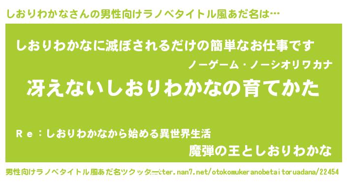 | 意味不明あだ名 | 『住所不定無職しおりわかな(71歳)』 |