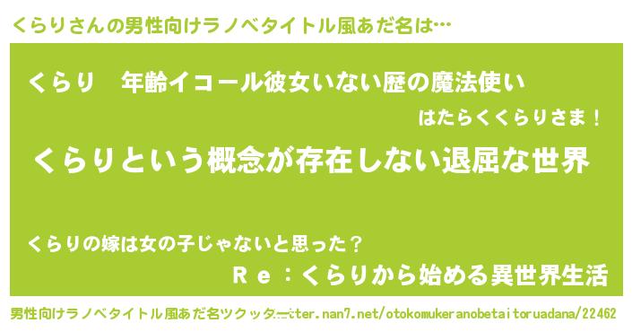 | 女子向けラノベタイトル風あだ名 | 『くらりの契約王妃』『くらり様がみてる』 |