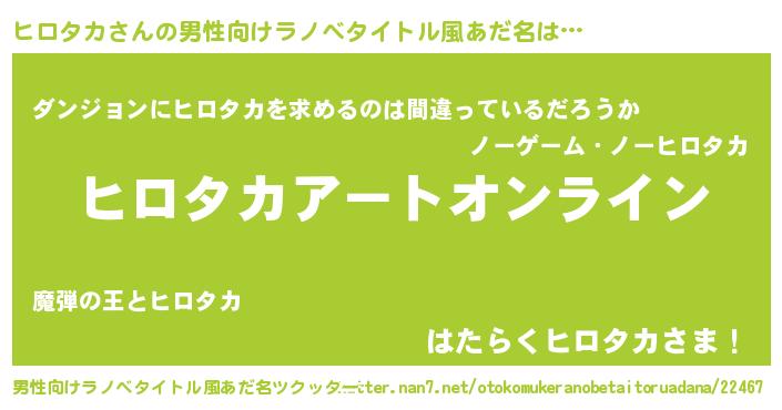 | 女子向けラノベタイトル風あだ名 | 『誰かこのヒロタカを説明してください! ~契約から始まるウェディング~』 |