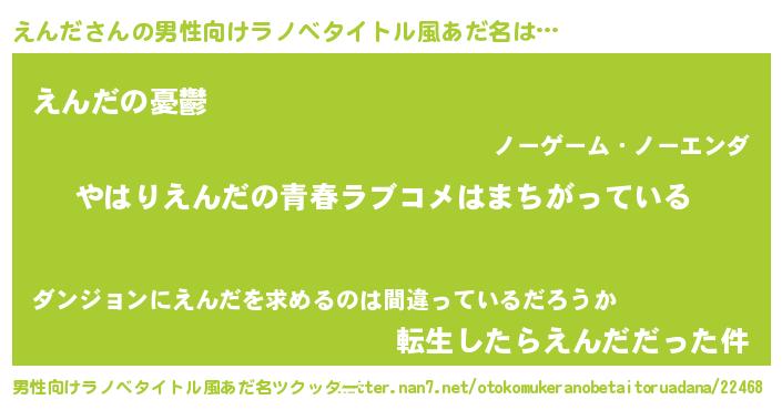 | 女子向けラノベタイトル風あだ名 | 『えんだの雑貨屋さん』 |