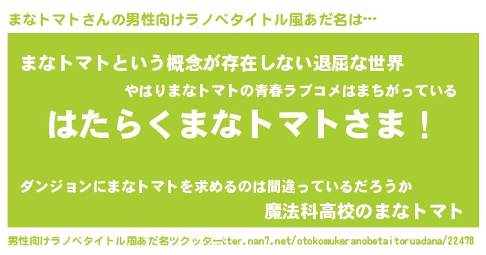 | ヒーロー風カッコイイあだ名 | 『ネオマナトマト』『銀牙騎士マナ』 |