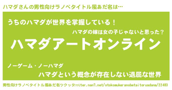 | 女子向けラノベタイトル風あだ名 | 『誰かこのハマダを説明してください! ~契約から始まるウェディング~』 |