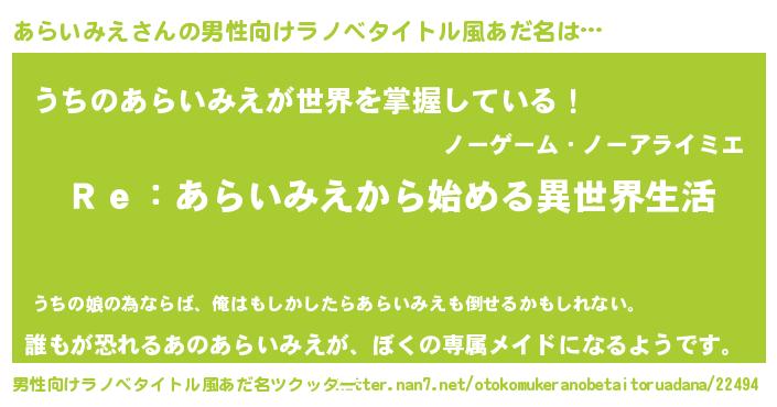 | 意味不明あだ名 | 『自称あらいみえ』『永久保存あらいみえ』 |