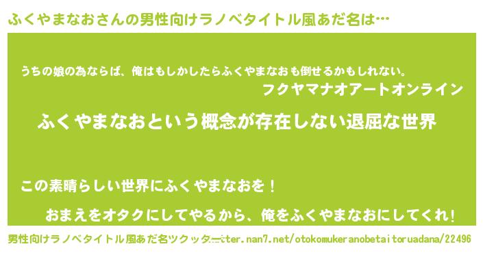 | 女子向けラノベタイトル風あだ名 | 『異世界で失敗しない100のふくやまなお』 |