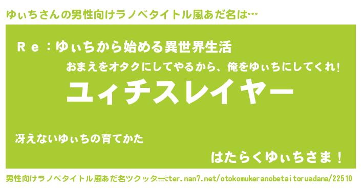| ヒーロー風カッコイイあだ名 | 『超時空戦士ユィチ』『愛の使者ゆぃち』 |
