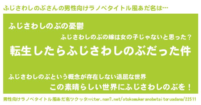 | 胡散臭い通販商品みたいなあだ名 | 『モテモテ間違いなし霊験あらたかなお札…その名も「ふじさわしのぶ」』 |